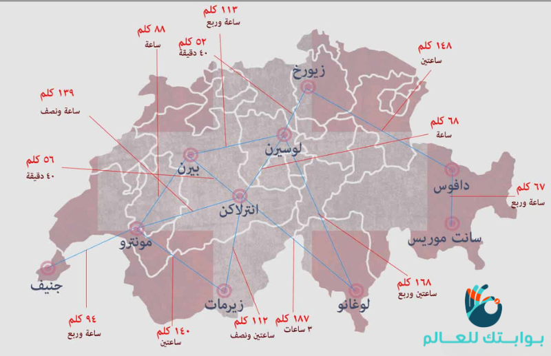 خريطة المسافات بين المدن السويسرية