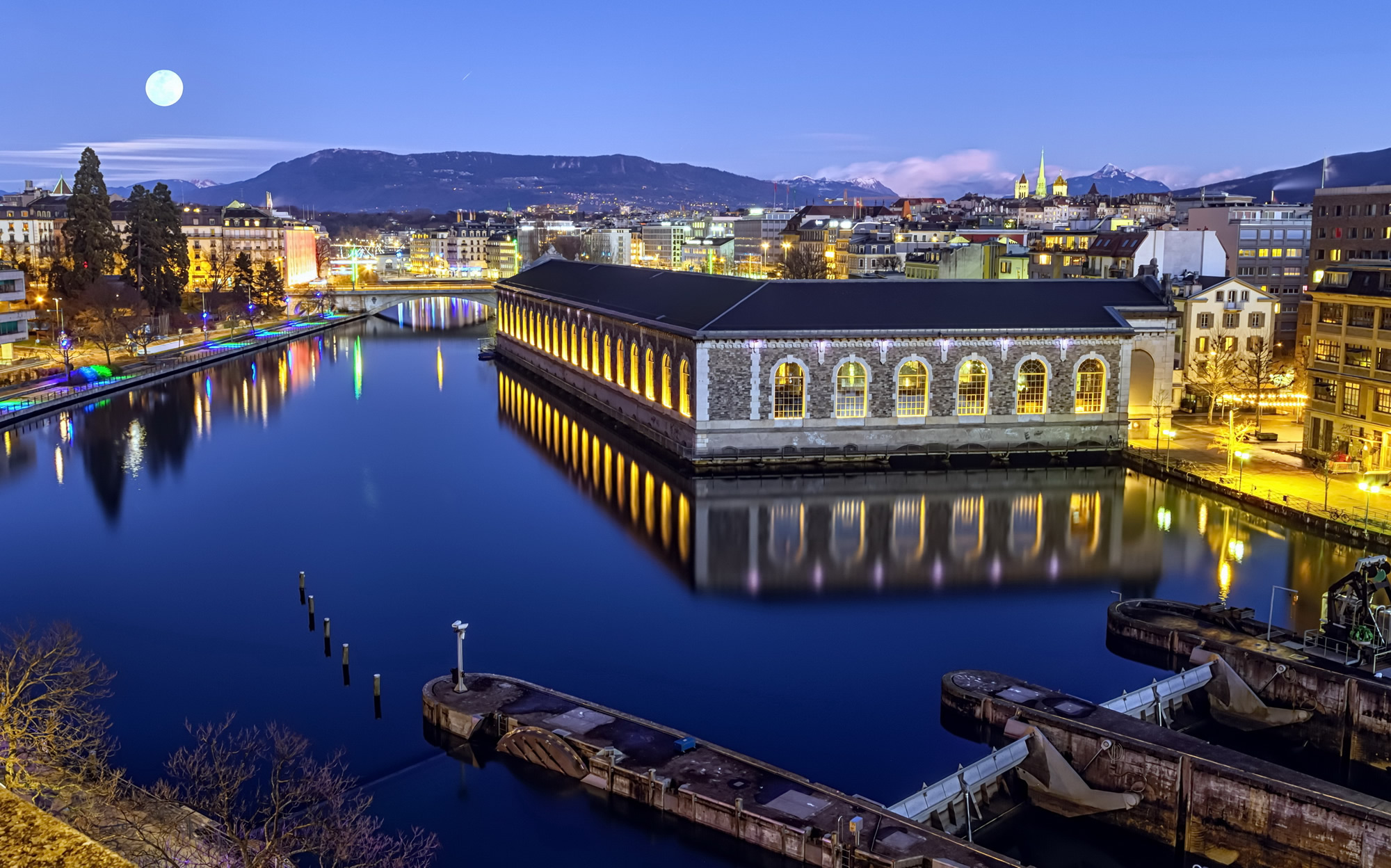 - تقع جنيف على ساحل بحيرة جنيف ومحاطة بجبال الألب وجبال جورا. تشتهر المدينة بعدد كبير من المتاحف والمعالم الجميلة.